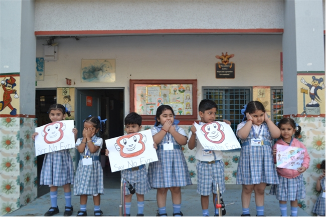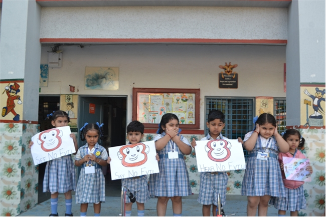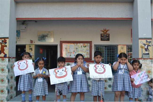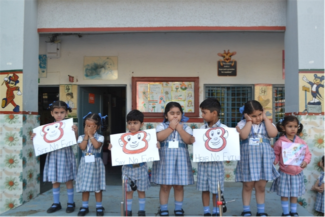 The pre-primary wing witnessed an amazing special assembly hosted by nursery class.The little angels stepped on stage confidently with an atmosphere of learning, warmth, and camaraderie . The prayers were sung  religiously and the thought was a tribute to the "Father of the Nation" ~See no evil, say no evil and hear no evil. Followed by the topic ~ My favourite fruit - Mango. It was a moment of pride and joy to see them perform so well.