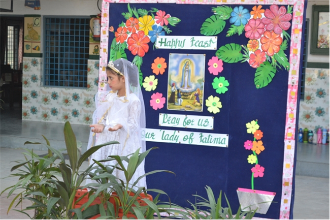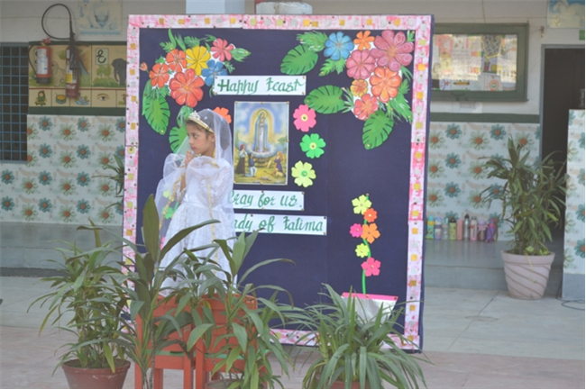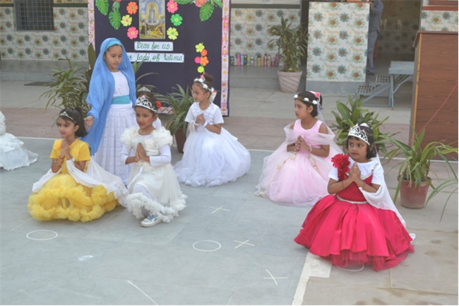 The Feast of Our Lady of Fatima was celebrated by Pre-Primary classes with great devotion and reverence. The celebration began with a soulful prayer dance dedicated to Mother Mary, followed by a short skit highlighting the message of peace and faith given by Our Lady of Fatima.To express their love and creativity, the students also participated enthusiastically in a Portrait Colouring Competition, depicting the serene image of Mother Mary.The event reminded everyone of the power of faith and the importance of prayer in our daily lives.