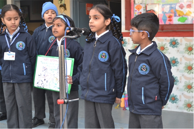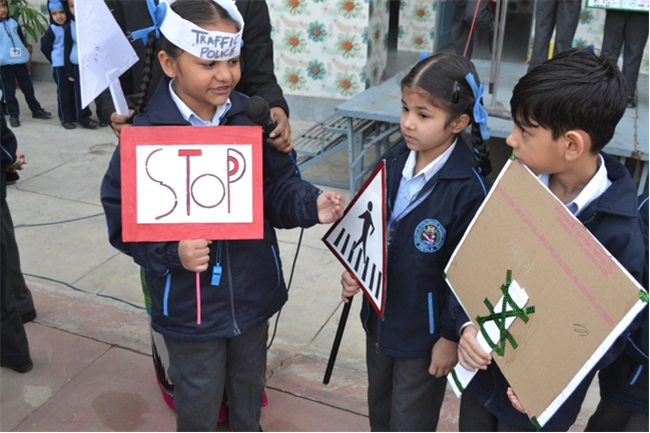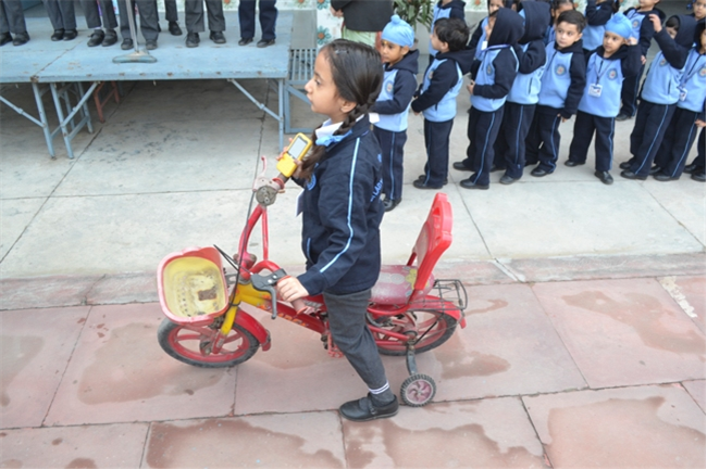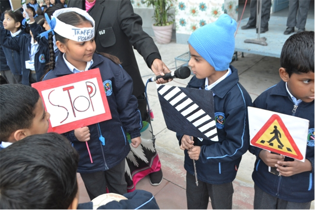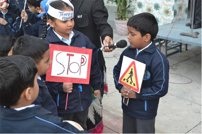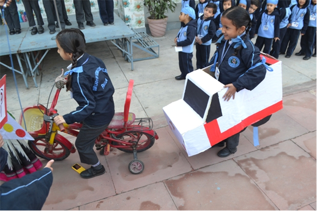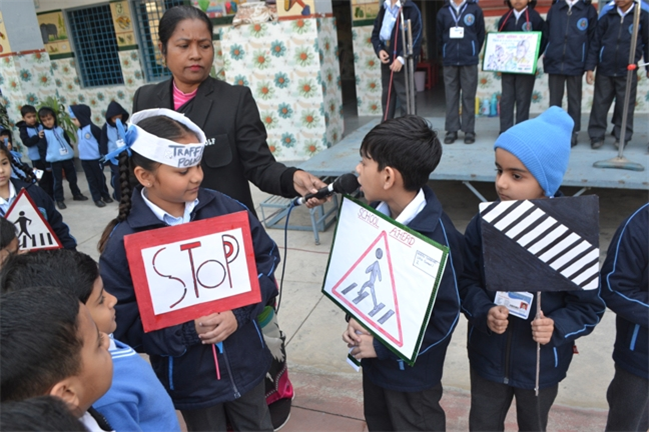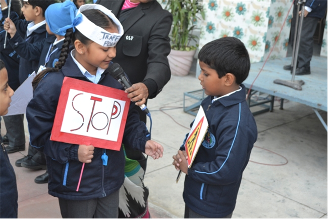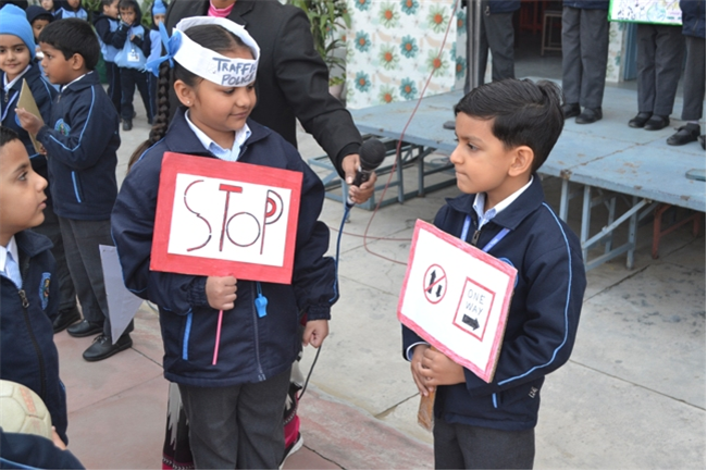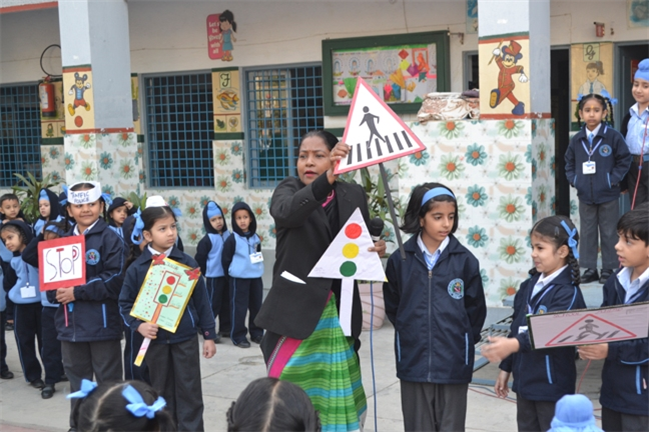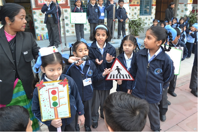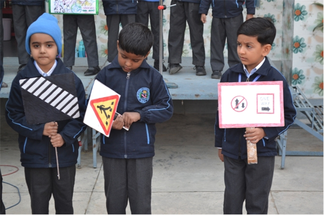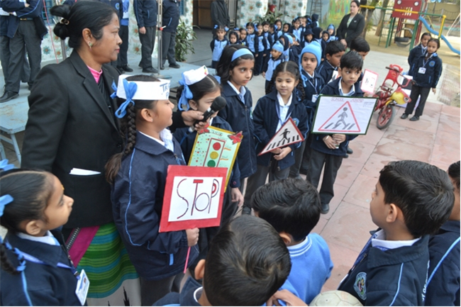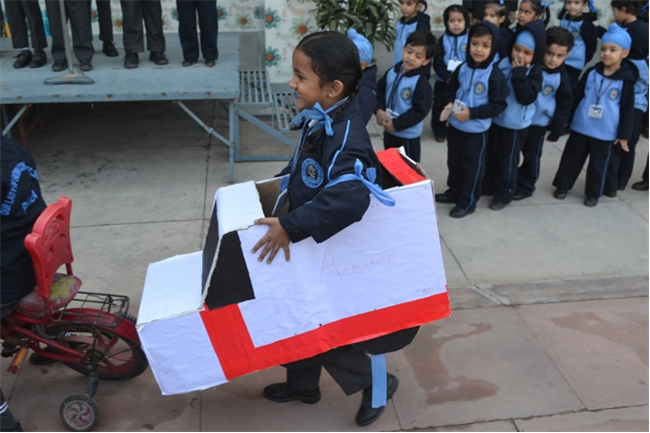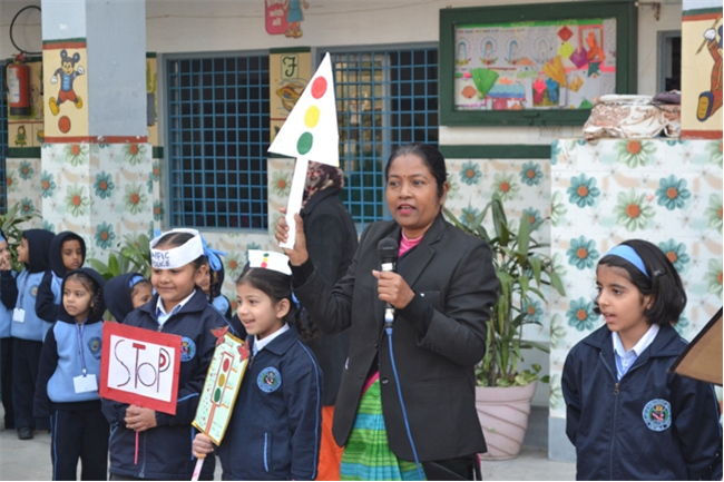 A special assembly was hosted by class Ukg - green on the theme "Traffic Awareness". It was a lively and educational event for kids, featuring skits, rhymes, and interactive demonstrations about road safety rules like use zebra crossing, obey traffic signals, and wear helmets. The objective was to teach young children about road safety to promote safe behaviour and help them become more responsible citizens, Children took turns explaining what each color means (red means stop, green means go, yellow means go slow) Teacher talk also highlighted the importance of road safety in daily life. Like -