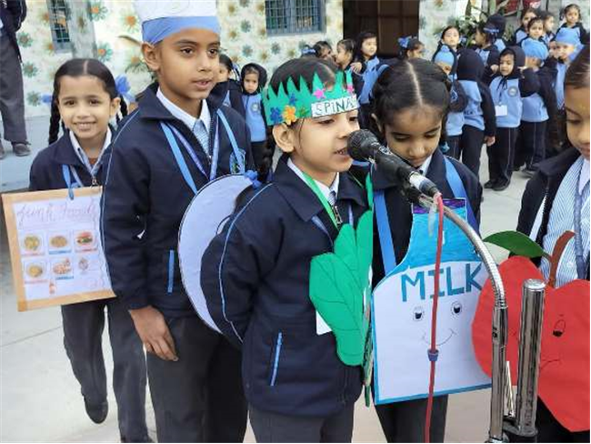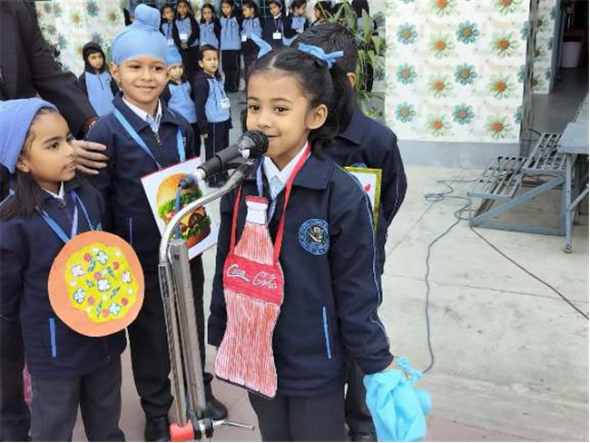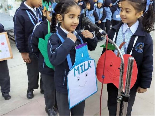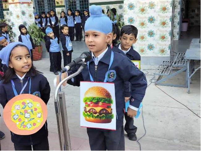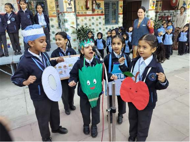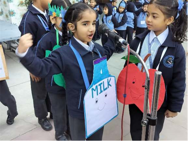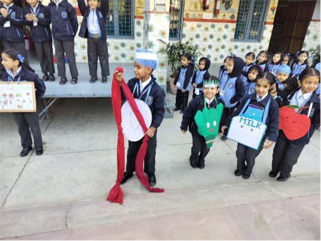 Class Ukg - Blue showcased a wonderful "Special Assembly" on the topic of "Healthy Food versus Junk Food". They motivated all students to make healthy food choices by performing a short play to visually demonstrate the topic. Also, a symbolic "tug-of-war" game between the "Healthy Food Team" and the "Junk Food Team" beautifully illustrated the ongoing battle between good and bad food choices.