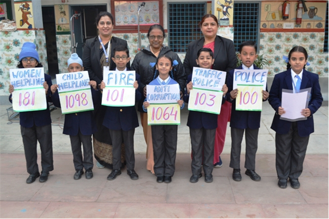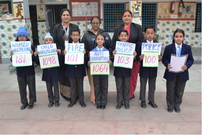 The students were familiarized with emergency contact numbers like Police, Fire, Traffic Police, Child Helpline, Women Helpline and Anti Corruption helpline numbers, during the assembly so that they are aware of them in time of distress.