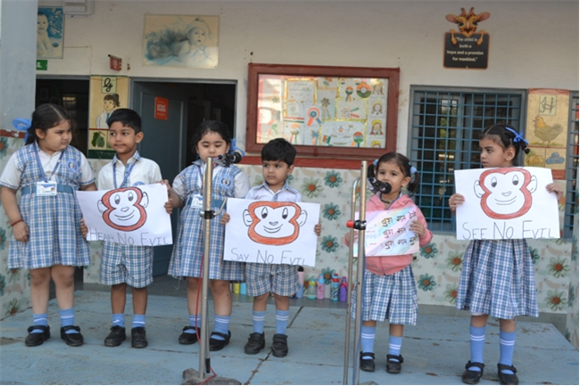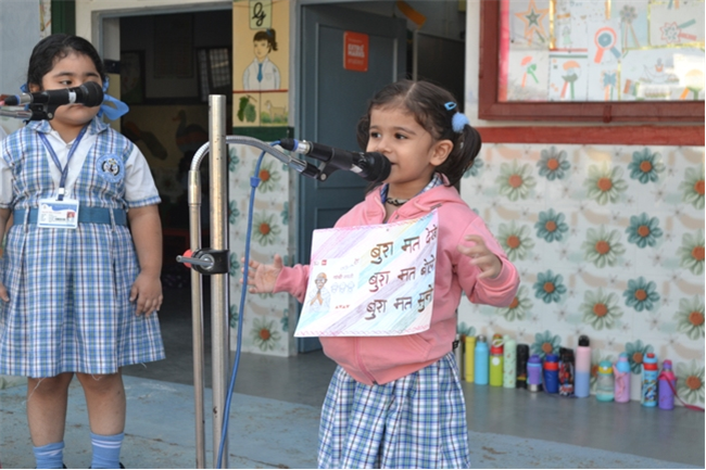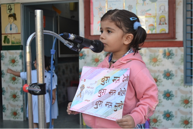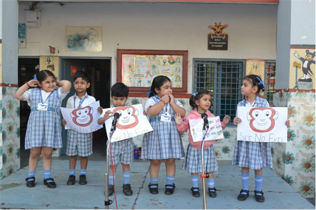 The pre-primary wing witnessed an amazing special assembly hosted by nursery class.The little angels stepped on stage confidently with an atmosphere of learning, warmth, and camaraderie . The prayers were sung religiously and the thought was a tribute to the "Father of the Nation" ~See no evil, say no evil and hear no evil. Followed by the topic ~ My favourite fruit - Mango. It was a moment of pride and joy to see them perform so well.