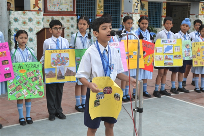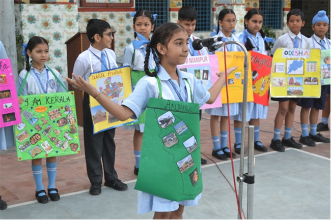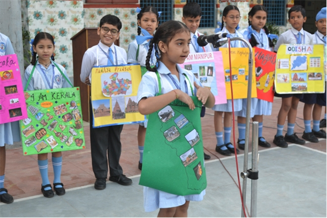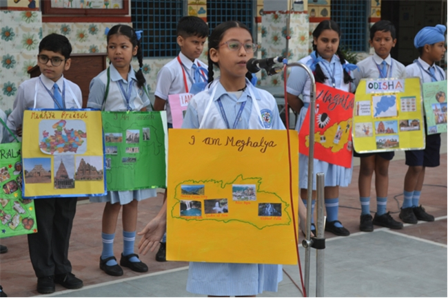 The students of Class 3rd B beautifully presented a play titled “The Colours of India.” Through their performance, they showcased that India’s true beauty lies not only in the colours of its flag — saffron, white and green— but also in the hearts, cultures, languages, and traditions of its people. The play conveyed a powerful message of Unity in Diversity, reminding everyone that though we belong to different states, speak different tongues, and celebrate varied traditions, together we form one nation — India. It was a wonderful tribute to the spirit of togetherness and the soul of our nation.